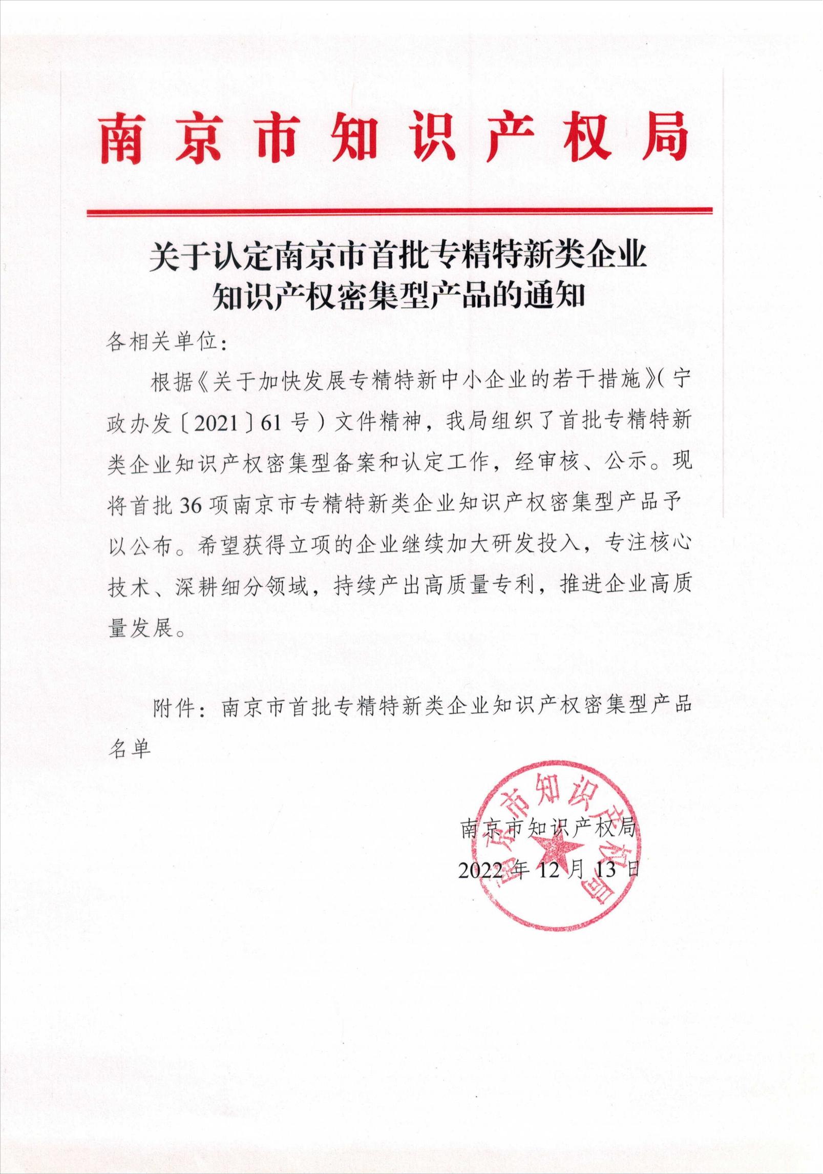 知識(shí)產(chǎn)權(quán)密集型產(chǎn)品認(rèn)定是南京市在全國(guó)范圍內(nèi)率先支持“專精特新”企業(yè)高質(zhì)量發(fā)展的新舉措,首批認(rèn)定共計(jì)36項(xiàng)產(chǎn)品,涵蓋新材料、生物醫(yī)藥及高性能醫(yī)療器械等20多個(gè)領(lǐng)域。