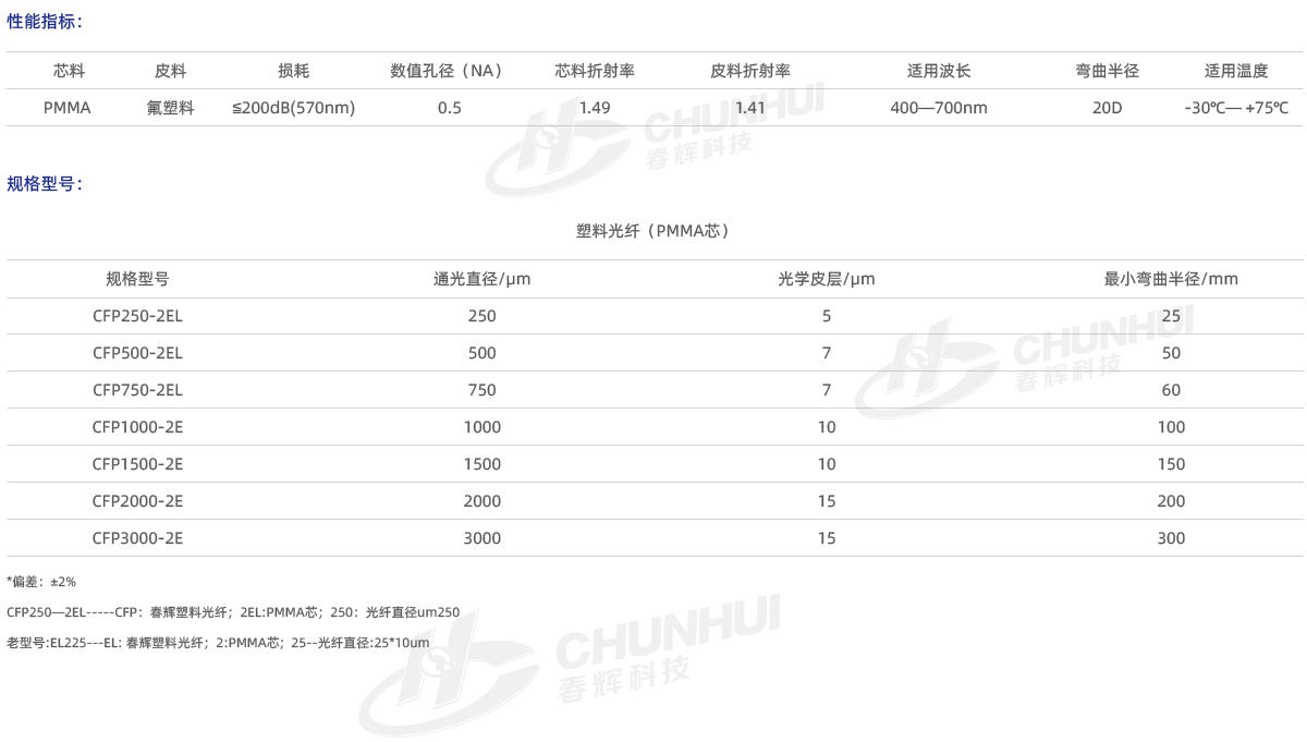 采用聚甲基丙烯酸甲酯(PMMA)作為芯層,氟塑料作為光學皮層